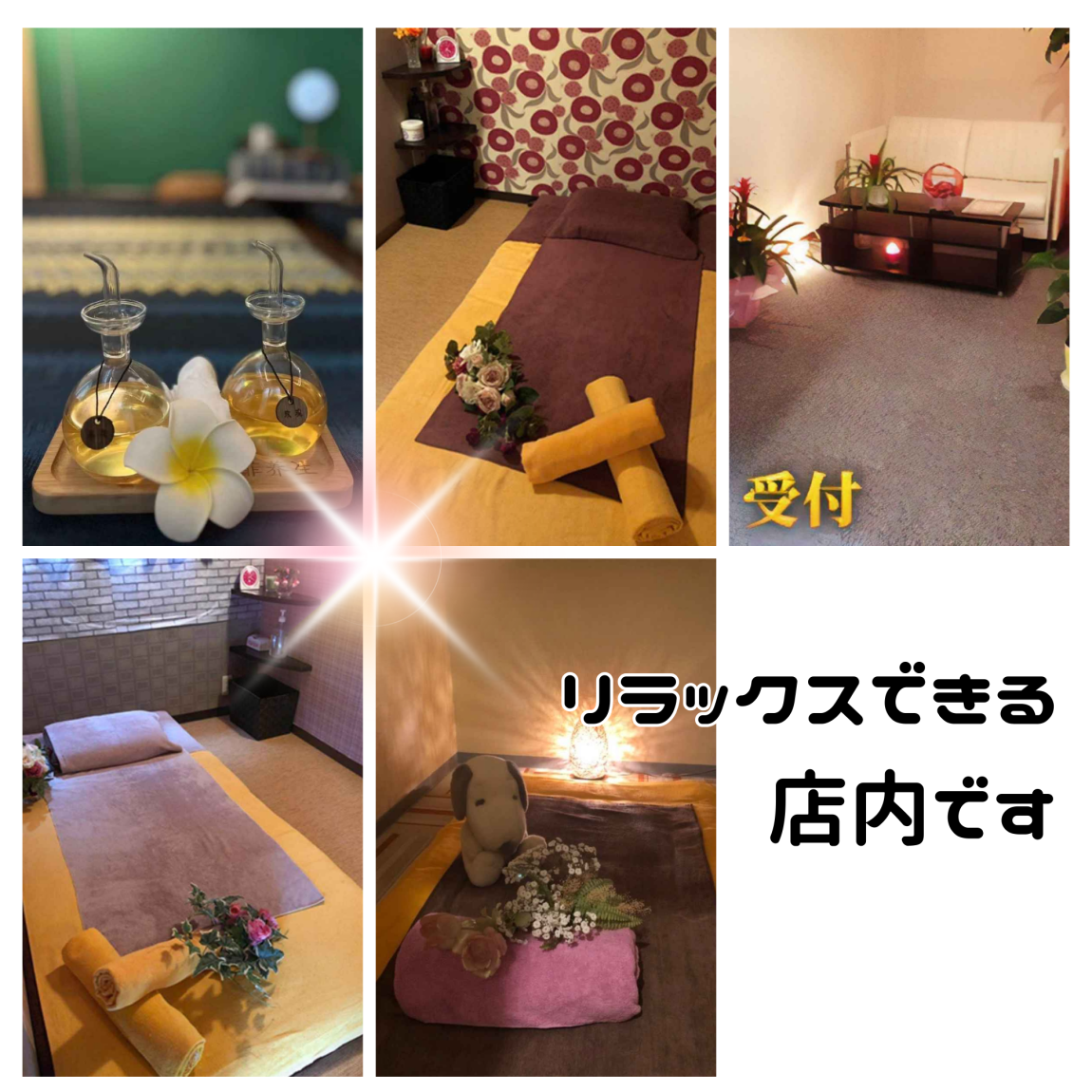 スタッフは施術経験が長く、とても気持ちのいい、しっかりとしたマッサージが体験できます。お仕事のあとや、休みの日の疲れも、さっぱりと解消できますね♪気分が晴れない、落ち込んだときなどにもご来店いただけると、きっと満足していただけます♪